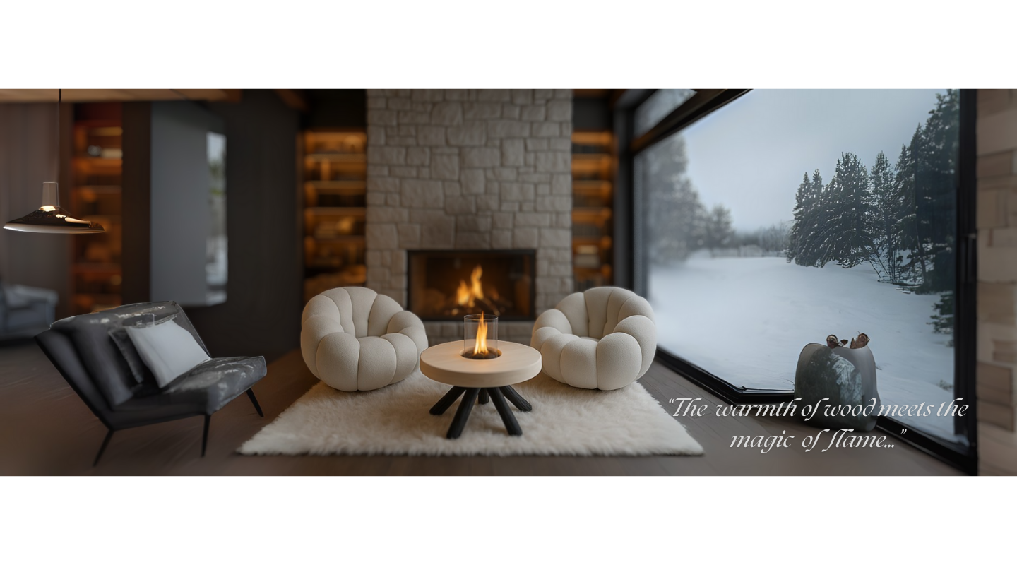 Combining aesthetics and warmth, specially designed Rota Wood decorative fireplaces bring a unique atmosphere to your living spaces.